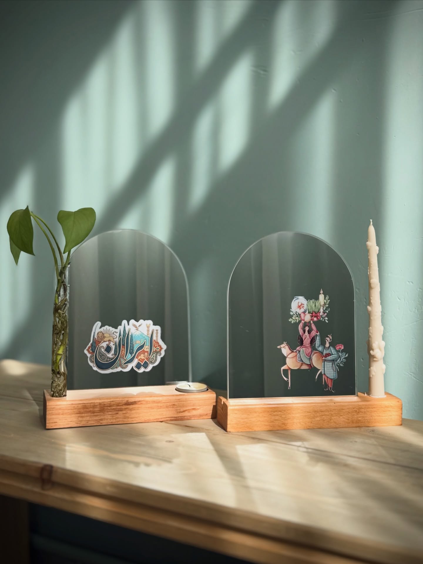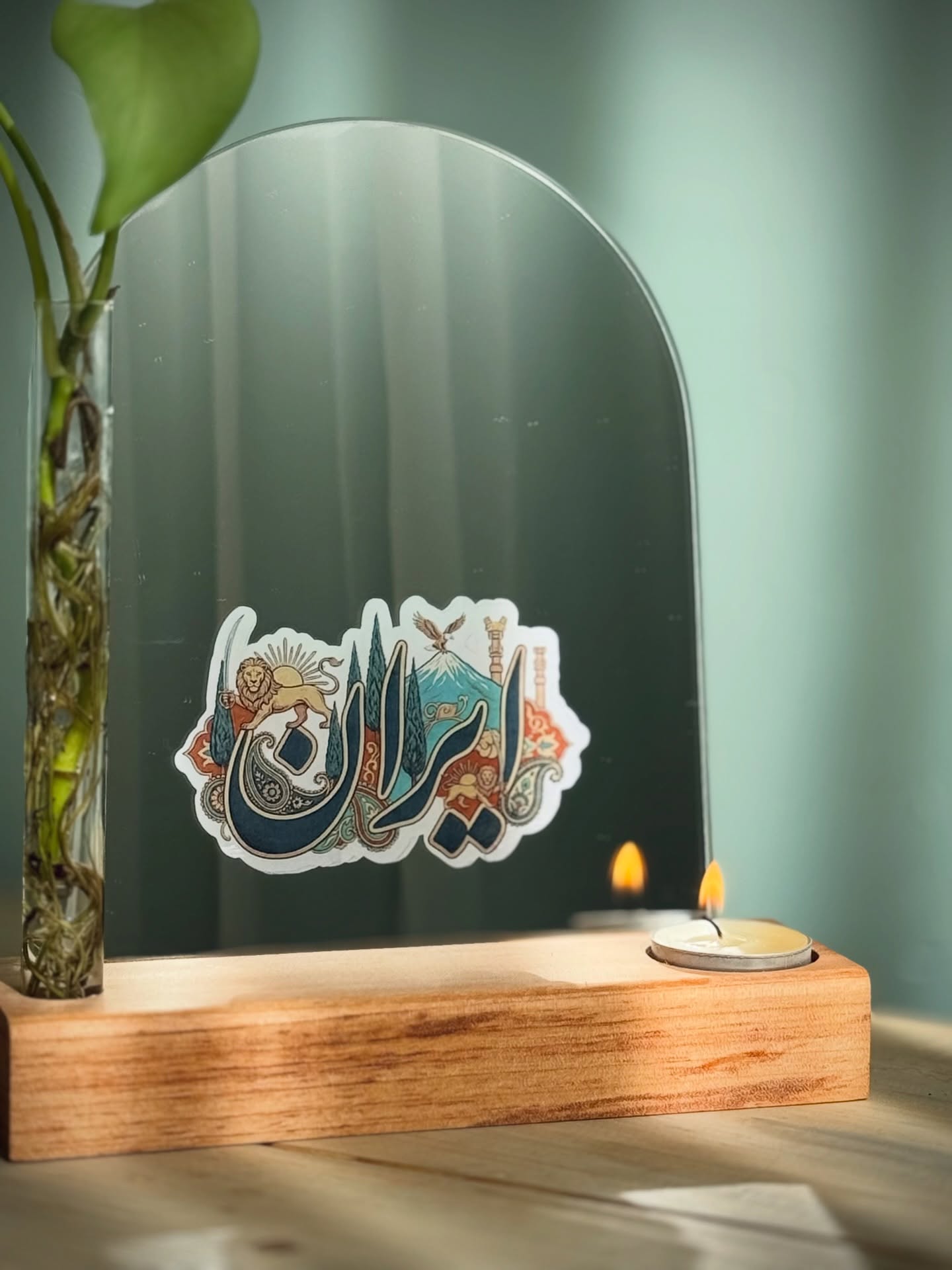 آینه تاج خم پایه چوبی شمع و گل هفت سین